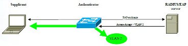 Besides authentication, perhaps the most useful feature of IEEE 802.1X is dynamic VLAN assignment [4]. A supplicant authenticates to the RADIUS Server, which returns a RADIUS Access- Accept packet to the authenticator. The packet also includes attributes indicating which VLAN to assign to the supplicant’s port. For example, a student logging into a terminal could be assigned the ‘student VLAN’; a member of staff logging in to the same terminal could be assigned the ‘staff VLAN’. If no one is logged in, the terminal may have ‘computer’ credentials that permit access to a ‘maintenance VLAN’ for software updates and remote administration. Note that dynamic VLAN assignment is not part of the IEEE 802.1X specification, but most vendors have implemented it.